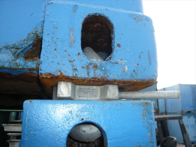 コンテナを積み重ねる時、四隅にツイストロックを設置してから積み重ねてロックを掛けることにより、上下のコンテナ同士が固定されます。地震や台風対策に使用されます。 |