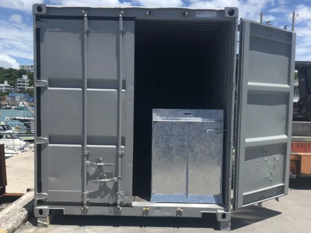 コンテナに直接取り付けて、収納できるスロープです。 他にもご要望や条件に合わせたスロープを作成致しますので、まずはお問合せください。(金額は、現場ヤードにて取付作業行った場合の金額です。) |